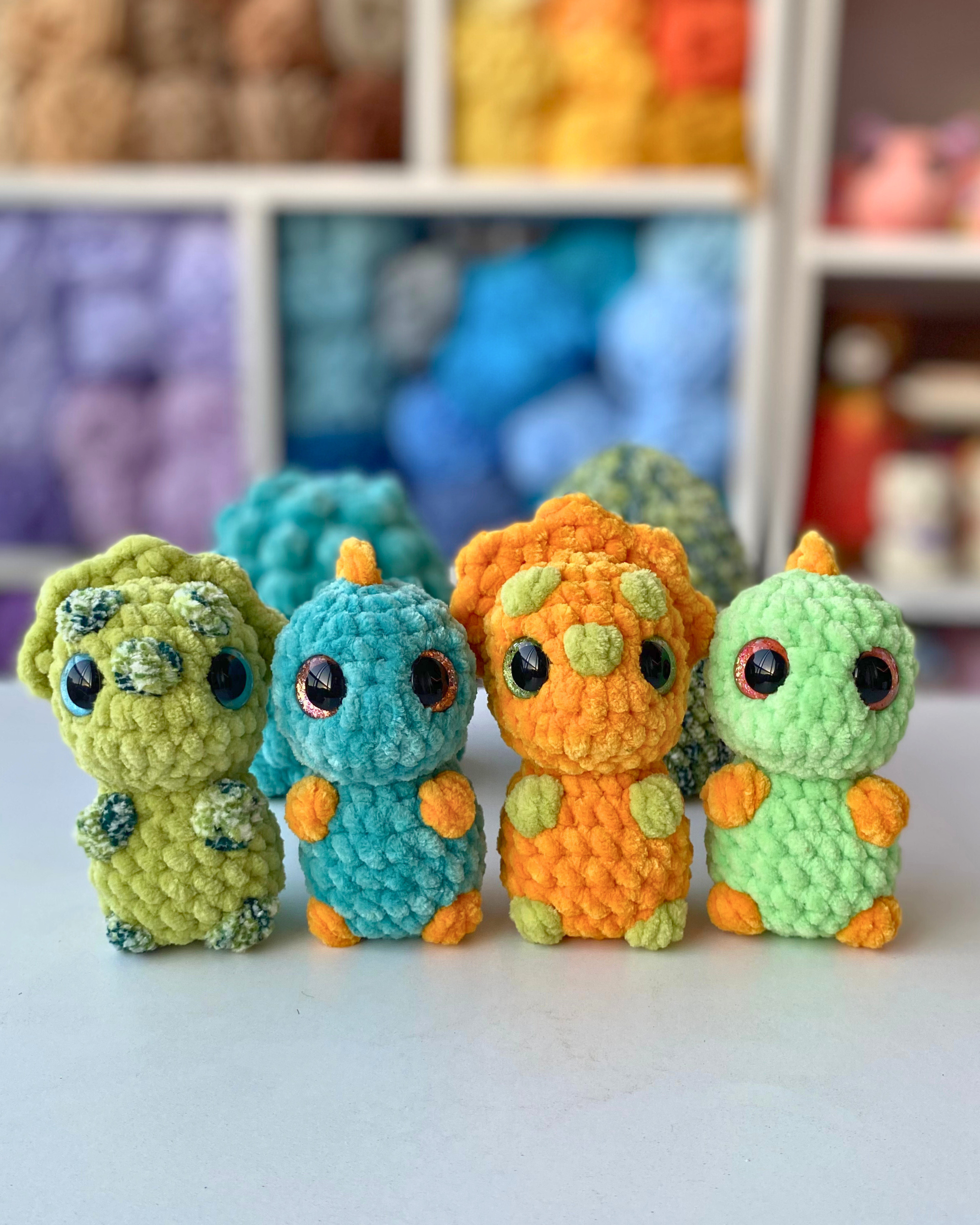 Crochet Hatching Baby Dinosaurs No-sew Amigurumi Pattern: T-rex & Triceratops